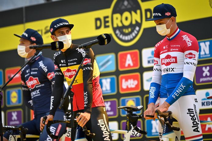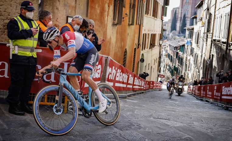 Van der poel reed tijdens de ronde van vlaanderen van 2019 voor het eerst met zijn witte broek.